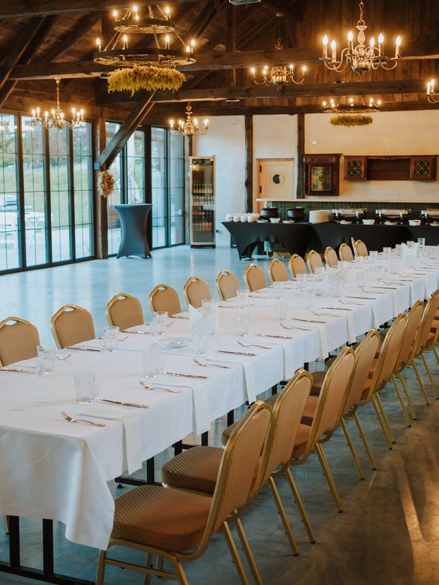 Sala nr 3 - nowoczesna przeszklona stodoła o powierzchni 200m2, bliskość natury tworzy unikalny klimat do prelekcji. Dysponuje unikalnym drewnianym wystrojem z centralnym kominkiem.
