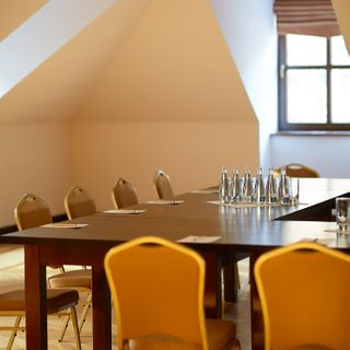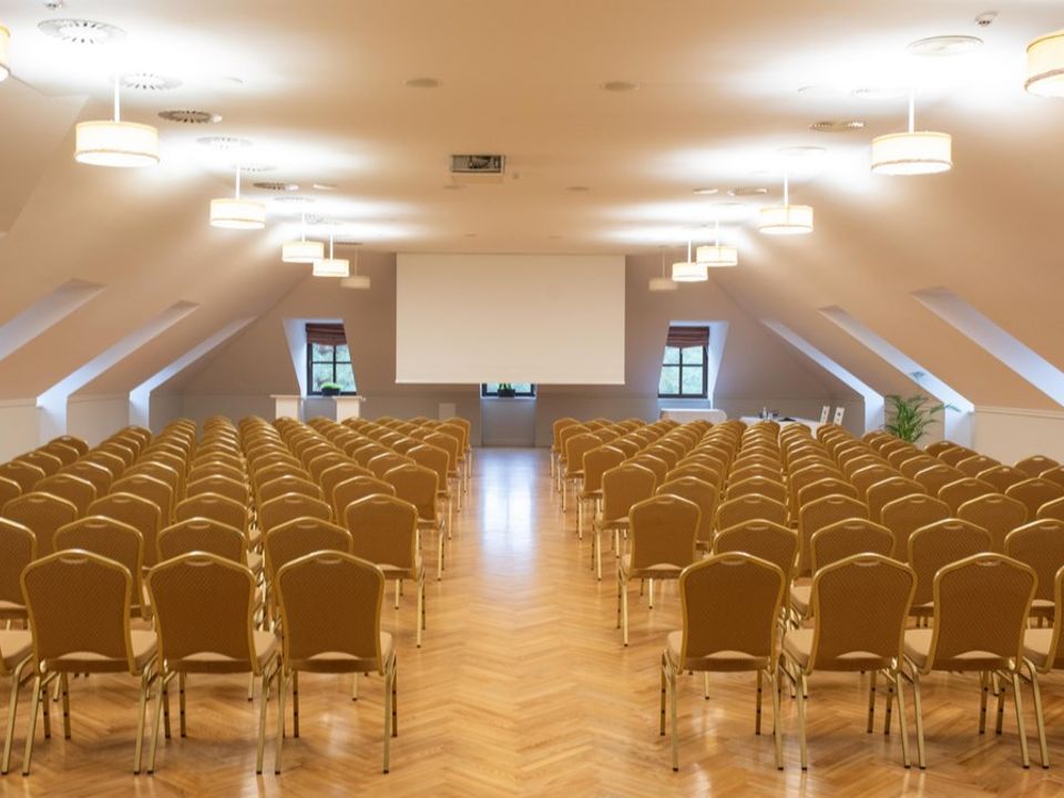 Oferujemy Państwu dwie sale konferencyjne wyposażone w wysokiej jakości projektory multimedialne (m.in Sanyo PLC-WM4500L), flipchart, automatyczny ekran oraz nagłośnienie sufitowe. Sale są klimatyzowane z możliwością zaciemnienia okien. Wszystkie sale znajdują się w zasięgu wzroku na jednym poziomie, a dodatkowo w pobliżu znajduje się foyer o powierzchni 60m2, które można wykorzystać, np. jako miejsce wystawowe.